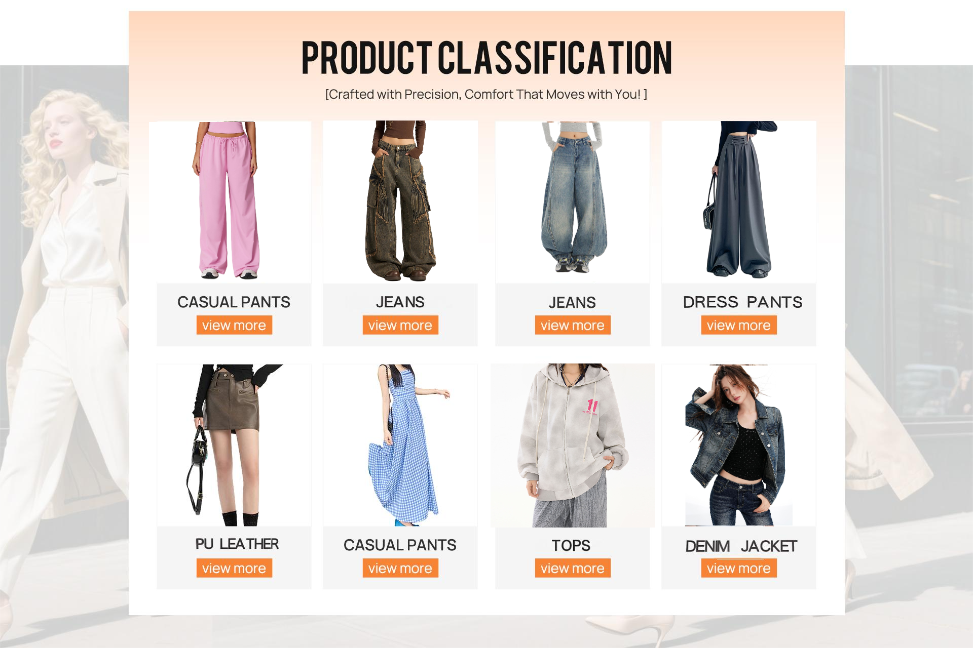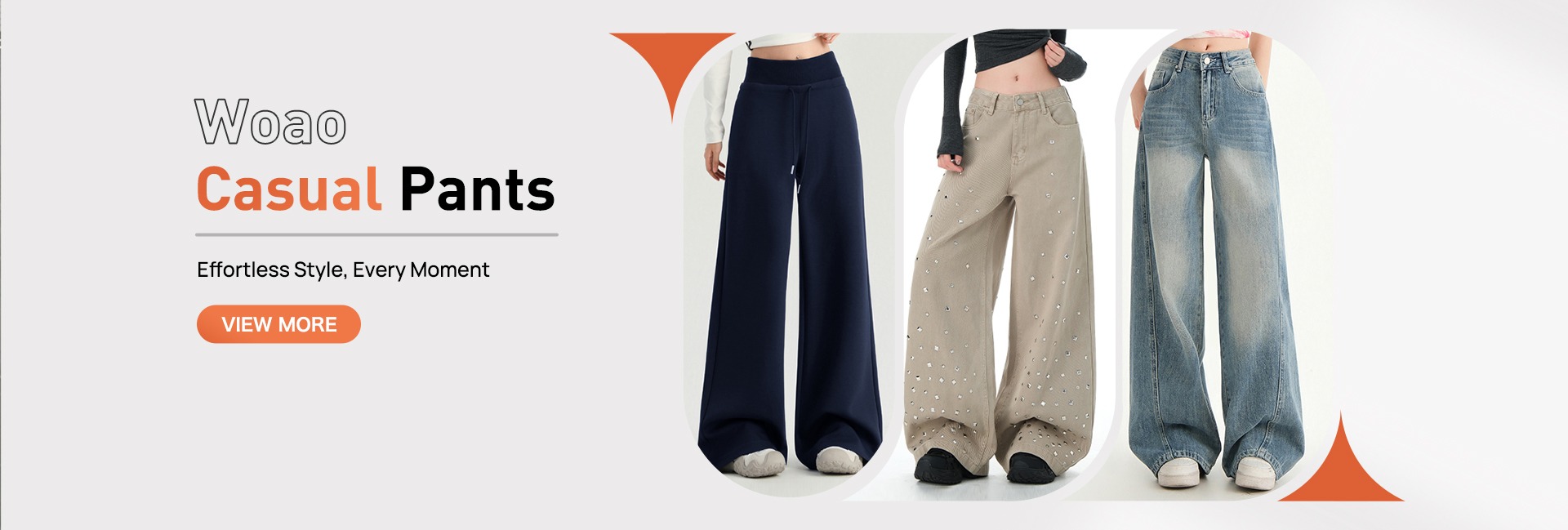 主营产品: 高腰宽腿裤,宽松直筒裤,女式休闲裤,高腰喇叭裤,透气休闲女裤